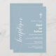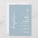 Invitation Script moderne Baptême Blanc Croix Dusty Bleu