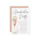 Il s'agit d'une invitation minimaliste et chic pour un parti de diplôme collégial/universitaire. Il utilise une écriture manuscrite en noir et blanc classique avec une flûte élégante et festive de vin pétillant rose. Veuillez contacter le concepteur pour toute question concernant ce design.
