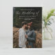 Script moderne Code QR simple Faire-part de mariage photo. Le dos a une photo et des détails supplémentaires avec le code RSVP QR. Cliquez sur le bouton Modifier pour personnaliser cette conception en fonction de vos besoins.