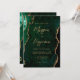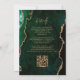 Cette élégante invitation de mariage présente une image arrière - plan d'agate d'aquarelle vert émeraude parée de parties scintillant en faux or. Le texte personnalisable combine écriture manuscrite moderne couleur or, cuivre et polices italiques. L'envers offre de l'espace pour les détails mariages sur un arrière - plan de course vert correspondant, ainsi qu'un code QR que les clients peuvent scanner pour visiter votre site Web et RSVP, ce qui permet d'économiser le coût d'impression et d'envoi de cartes RSVP séparées.