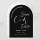 Boissons gratuites et mariage ! Un moderne et décontracté enregistrer notre invitation de date en noir et blanc simple avec typographie de script contemporain. Un drôle et minimal enregistrer la date parfaite pour un couple amusant à la recherche d'une papeterie mariage unique et non conventionnelle qui correspond à leur personnalité vibrante.