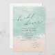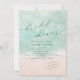 Beau turquoise abstraite aquarelle scintillante vague d'océan et les coeurs dans l'arrière - plan de plage de sable, surmonté d'un script élégant et d'élégante police serif, moderne et simple. Grande invitation pour la douche de mariage de plage nautique, mariage de destination tropicale, douche de nuptiale sur le thème de l'océan côtier en été.