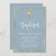 Invitation Script moderne Gold Cross Dusty Blue Boy Baptême