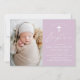 Les invitations au baptême simples comportent un script décontracté de calligraphie blanche avec un arrière - plan violet clair pour un design parfait pour un baptême de bébé moderne. Personnalisez les élégantes invitations au baptême avec la photo, le nom et les détails de l'événement religieux de votre enfant ci-dessous. L'arrière de l'invitation de baptême photo offre de l'espace pour des textes et des photos supplémentaires. Cette invitation au baptême violet photo est parfaite pour les filles!