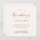 Ce faire-part de mariage minimaliste, en terre cuite, orangé et crème d'ivoire, présente une typographie manuscrite moderne et une disposition simple et élégante.