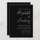 Ce faire-part de mariage moderne simple est composé de texte blanc sur un arrière - plan noir. Ajoutez les noms de la mariée et du marié en calligraphie stylisée et les détails en police sans serif. L'envers est noir solide.