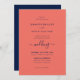 Invitation Script moderne Marine bleu et Mariage de corail