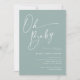 Script moderne Sage Green Oh Baby shower Invitation. Cliquez sur le bouton Personnaliser pour customiser cette conception avec vos détails.