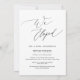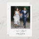 Cette carte d'invitation sur le thème romantique moderne (nous sommes partis), avec votre photo de mariage, est parfaite pour votre célébration/annonce de mariage en fuite. Ajoutez vos détails dans une police/écriture noire assortie.