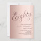 Une invitation design et moderne pour une fête du 80e anniversaire. arrière - plan rose dégradé or et le mot Eighty écrit avec d'élégantes grandes lettres de script en or rose foncé. Personnalisez et ajoutez un nom et des détails du parti.