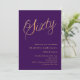 Une invitation design et moderne pour une fête du 60e anniversaire. Un arrière - plan de couleur violette et le mot Sixty écrit avec d'élégantes grandes lettres de script en faux or. Personnalisez et ajoutez un nom et des détails du parti.