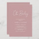 Baby shower rose rose moderne poussiéreux invitation avec un design simple avec "Oh Baby" dans un style rustique typographie script. Cette invitation élégante à la disposition minimaliste est parfaite pour un baby shower de fille.
