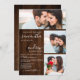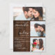 Mariage en bois brun rustique avec 3 photo-montage en grille.