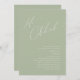 Voici notre magnifique script lunatique | sauge vert fêtons l'invitation parfaite pour votre simple fête moderne de printemps de boho. Notre design élégant comprend une palette de couleurs vives et pastel avec un script de calligraphie vintage et chic. Que vous préfériez un style minimaliste ou classique, notre produit éditable unique offre luxe et élégance, parfait pour créer une touche élégante et romantique qui rendra votre journée spéciale inoubliable. Contactez-nous pour toute question sur le design, et laissez-nous vous aider à faire le mariage de vos rêves.