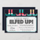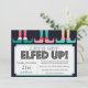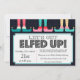 Belles caractéristiques d'invitation à la fête de fêtes en ivoire et Arrière - plan bleu clair. "Laissons nous fatiguer" apparaît en haut en noir. Customisez avec votre salutation personnelle, vos noms de famille et vos noms individuels.