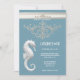 Un bel hippocampe blanc uni est dressé contre un arrière - plan bleu ciel qui est surmonté d'un faux orchestre de fleurs décoratives argentées. Les modèles de texte blanc apparaissent à droite de l'hippocampe et sont entièrement personnalisables. Ce design luxueux et élégant est idéal pour les séjours à cheval, la plage, les anniversaires côtiers et maritimes ou océaniques, les mariages, les anniversaires, les retraites et sont adaptés à un usage à la fois professionnel et personnel. N'hésitez pas à changer la couleur arrière - plan en n'importe quelle couleur de votre choix pour convenir à votre occasion spéciale.