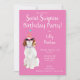 Un secret surprise Anniversaire Invitation pour quelqu'un de spécial. Travaille pour n'importe quel âge. Conçu avec un chien mignon avec lunettes de soleil et casquette d'anniversaire, cette carte inclut le nom, la date, l'heure, l'emplacement et RSVP Détails sur le devant avec un arrière - plan rose vif et un texte blanc. L'inverse est un violet doux pour compléter le design avant. Pour personnaliser, insérez simplement vos détails dans notre modèle facile, en remplaçant l'exemple de texte. C'est rapide et facile !