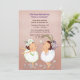 Une belle invitation de fête d'anniversaire de petite fille pour votre petite ballerine ! Avec un ami, ils sont portés en équilibre dans des leurs tutus et avec des fleurs dans leurs cheveux, ils sont les danseurs gracieux avec un talent sensible.