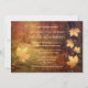 Ce faire-part de mariage rustique à thème automnal présente un sentier de randonnée paisible et bordée d'arbres resplendissant dans une palette de couleurs d'automne étonnante dans les tons d'or, d'orange et de rouge - des graphiques semi-transparents en forme de feuilles d'érable bordant le bord droit avec une seule feuille d'érable sur le bord gauche - par katz_d_zynes | Une partie de la collection de Mariages de automne rustiques du sentier d'automne de katzdzynes >> https://www.zazzle.com/collections/119035931342242877