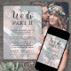 Famille Invitation et amis à vous voir dire "Je le fais" encore avec un élégant texte de 2 photo moderne superposer la suite faire-part de mariage. Tout libellé est simple à personnaliser, y compris une citation qui dit "nous faisons partie II." Customisez-le pour toute célébration du mariage, comme une cérémonie de renouvellement du voeu, une réception du 1er anniversaire, une soirée post-elopement, un cocktail ou un dîner. Personnalisez avec les détails de votre choix, y compris la date du mariage, rsvp, le code vestimentaire, le site Web, etc. (IMAGE PLACEMENT CONSEIL : Un moyen facile de centrer une photo exactement comment vous voulez est de la rogner avant de télécharger sur le site Zazzle.) Le design moderne minimaliste noir et blanc présente deux images du couple marié, une calligraphie manuscrite branchée et une typographie chic de style machine à écrire. Que vous ayez fui ou non à cause de la pandémie ou que vous ayez été réduit à un minimonisme plus petit, plus intime ou micro-mariage, le bonheur jamais après la fête peut encore commencer. Félicitations à la mariée et au marié !