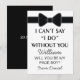 Vous envisagez de demander à quelqu'un d'être votre garçon de page pour votre futur mariage, alors pourquoi ne pas choisir ces cartes classiques de garçon de page avec cravate noire. Cette invitation personnalisée fera que votre ami, frère, cousin, neveu, fils ou qui que vous choisissiez se sentira encore plus spécial. Cette invitation est facilement personnalisable en cliquant sur le bouton 'personnaliser' sous l'image où vous pourrez modifier le texte, la police et la taille.
