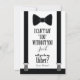 Pourquoi ne pas demander à quelqu'un d'être votre huissier pour votre prochain mariage, choisissez ces tuxedo noir classique, cravate arc, accolades cartes usher. Cet invitation customisé fera de votre ami, frère, cousin, neveu, fils ou qui que ce soit d'autre que vous choisissiez sentir cet extra spécial. Cet invitation est facilement personnalisé en cliquant sur le bouton customiser sous l'image où vous pourrez changer le texte, la police et la taille.