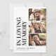 Célébrez la vie de votre proche avec nos invitations minimalistes. Avec un magnifique collage de 3 photos, ces invitations offrent un hommage émouvant à ceux qui sont commémorés. Est également inclus un modèle de service mémorial moderne et facile à personnaliser qui met l'accent sur les souvenirs et la vie bien vécue. Un mélange parfait de simplicité et d'élégance, ces invitations sont véritablement une célébration de la vie.