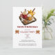 Cette charmante carte d'invitation de Noël capte la chaleur douillette de la saison des Fêtes. On y trouve l'illustration charmante d'un set de thé festif, avec du cacao chaud vapeur, de la crème fouettée, des biscuits et des bâtons de cannelle, tous disposés sur un plateau rustique. Les riches accents rouges et dorés apportent une touche d'élégance, complétant parfaitement l'accueil chaleureux "Joyeux Noël". Idéal pour répandre l'acclamation des vacances et inviter les invités à une fête de vacances, cette carte exhale l'esprit réconfortant de Noël, ce qui en fait un lieu idéal pour célébrer avec la famille et les amis.