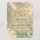Faire-part de mariage romantique et sucrée en rose et vert. Peinture défraîchie de fleurs sur des planches en bois, polices charmantes et élégantes. Parfait pour un mariage campagnard rustique.