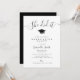 A simple graduation party invitation card with black and white colors. The text details can be personalized.