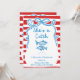 Reel in the fun with this quirky coastal design featuring bold red stripes, playful hand-drawn fish, and a big bow that says "party ready." Perfect for a seaside send-off, seafood soirée, or beach weekend with the girls. Fully editable to fit your plans—whether it's Miami or Margaritaville.