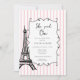 Simple et élégant rose et blanc "She said said Oui" invitation à la douche nuptiale à Paris avec la Tour Eiffel.