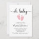 Cute minimum baby shower invite with "oh bébé" in a stylish script with swashes and a pastel pink watercolor of baby feet Underneath you can easily personalize the shower details.