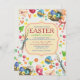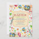 Une belle invitation de Pâques, dessinée à la main et aquarelle, avec des oeufs décorés, des paniers de Pâques, des branches de la chatte, des coeurs et plus encore. (FP)