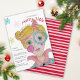 Cette amusante bête Amusez votre elfe une joyeuse petite invitation de fête de Noël présente ma main peinte à la main mélangé rose et bleu elfe de vacances avec des rayures et des pois. Le texte est entièrement modifiable sur la page du produit. Art original de Malissa Melrose.