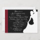 Invitation élégante avec le flourish léger floral et de coeur sur l'arrière - plan noir, la frontière rouge et noire de côté de point de polka et la silhouette blanche des jeunes mariés. Perfectionnez pour des parties de fiançailles, des dîners de répétition ou des douches. Les invitations sont faciles de customiser et inclure des enveloppes et le choix du papier. Graphics© http://www.delightful-doodles.com/