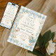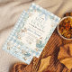 This beautiful design features an elegant watercolor wreath of frosted greenery, winter berries, and a sweet light blue buffalo check (gingham) border. Four adorable, illustrated geese dressed in winter attire frame the central text, setting the perfect tone for a winter wonderland or cozy cottage themed party.