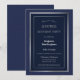 Une élégante invitation à la fête du 40e anniversaire bleu marine avec une bordure double bordée d'argent.