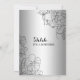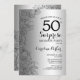 Invitation à la fête du 50e anniversaire de Silver Surprise. Design féminin de glam avec fausse feuille d'argent, accents botaniques et police de script de typographie. Carte invitation florale simple parfaite pour une célébration anniversaire surprise femme élégante. Peut être customisé à n'importe quel âge. Invitations Zazzle imprimées ou téléchargement instantané modèle imprimable numérique.
