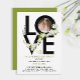 Cette invitation moderne pour une fête de la Saint-Valentin présente une écriture noire et audacieuse épelant « Amour », magnifiquement décorée d'une délicate guirlande de fleurs blanches et de feuilles vertes. À l'intérieur de l'une des lettres, il y a une photo de couple, ajoutant une touche personnelle au design. Le dos de l'invitation est d'un vert vif et lumineux, ce qui améliore son attrait festif. Cette invitation élégante peut également être personnalisée pour d'autres occasions, telles qu'un anniversaire de mariage, un anniversaire, Pâques ou toute autre célébration spéciale. Avec ses accents floraux romantiques et ses fonctionnalités personnalisables, c'est le moyen idéal pour inviter les invités à un événement mémorable plein d'amour et de joie !