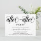 Les caractéristiques modernes, tendance et simples de l'invitation à divorcer de la partie "après la partie" sont le script de calligraphie en lettres manuscrites et les détails du parti. L'arrière de la carte est en noir massif.