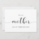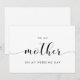 Une carte cadeau simple et minimaliste pour écrire un message personnel et sincère à votre mère le jour de votre mariage. Entièrement personnalisable avec vos couleurs préférées (texte et arrière-plan). Vous pouvez ajouter un message au verso ou le laisser vide si vous préférez écrire votre message à la main plus tard.