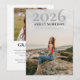 Faire-part simple et classe de remise de diplômes de deux photos avec l'année dans une grande police de style serif avec le nom et l'école en dessous superposé sur votre photo portrait de 5" x 7" devant. Le dos comporte une photo carré plus petite sur le dessus avec le mot "Graduate" ci-dessous et votre message de faire-part unique en dessous. Conception composite par Holiday Hearts Designs (droits réservés). Photos d'espace réservé modèle avec l'aimable autorisation de Unsplash.