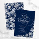 Simple et élégante invitation de fête de 30e anniversaire en marine et argent. Design classique avec rose, faux feuille argent et police de script de typographie. Carte invitation tendance parfaite pour une célébration anniversaire élégante. Personnalisez avec vos propres détails. Peut être customisé à n'importe quel âge. Invitations Zazzle imprimées ou téléchargement instantané modèle imprimable numérique.