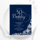 Invitation Simple Elégant 30e anniversaire Marine Roses d'arg