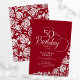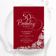 Simple et élégante invitation à la fête du 50e anniversaire en rouge et argent. Design classique avec rose, faux feuille argent et police de script de typographie. Carte invitation tendance parfaite pour une célébration anniversaire élégante. Personnalisez avec vos propres détails. Peut être customisé à n'importe quel âge. Invitations Zazzle imprimées ou téléchargement instantané modèle imprimable numérique.