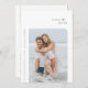 Voici la photo de mariage simple et élégante Save The Date Invitation, parfaite pour les couples à la recherche d'élégance et de simplicité. Cette photo minimaliste Save The Date Invitation carte présente un design noir et blanc élégant avec une belle photo du couple, créant un souvenir intemporel. La typographie contemporaine et la disposition minimaliste véhiculent une ambiance sophistiquée mais décontractée, idéale pour les mariages branchés et chics. Capturez l'essence de votre histoire d'amour avec cet élégant enregistrez la carte de date qui mélange harmonieusement modernité et romance.