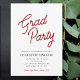 Cette invitation de fête de fin d'études présente un design simple accentué par un texte en script bordeaux qui indique "Fête de fin d'études". Personnalisée avec tous les détails de votre fête de célébration de fin d'études.