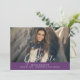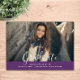 Simple Elegant Graduation Faire-part avec un design épuré et simple en violet. Ajoutez une photo et les détails de graduation pour customiser. La couleur de l'Arrière - plan à l'arrière de l'invitation peut être modifiée pour compléter la photo ou pour ajouter une couleur de l'école.
