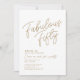 Invitation personnalisée de 50e anniversaire 'Fabulous Fifty' blanche et or avec une typographie classe et moderne. Personnalisez-la facilement avec le nom, l'âge et les détails de la fête.